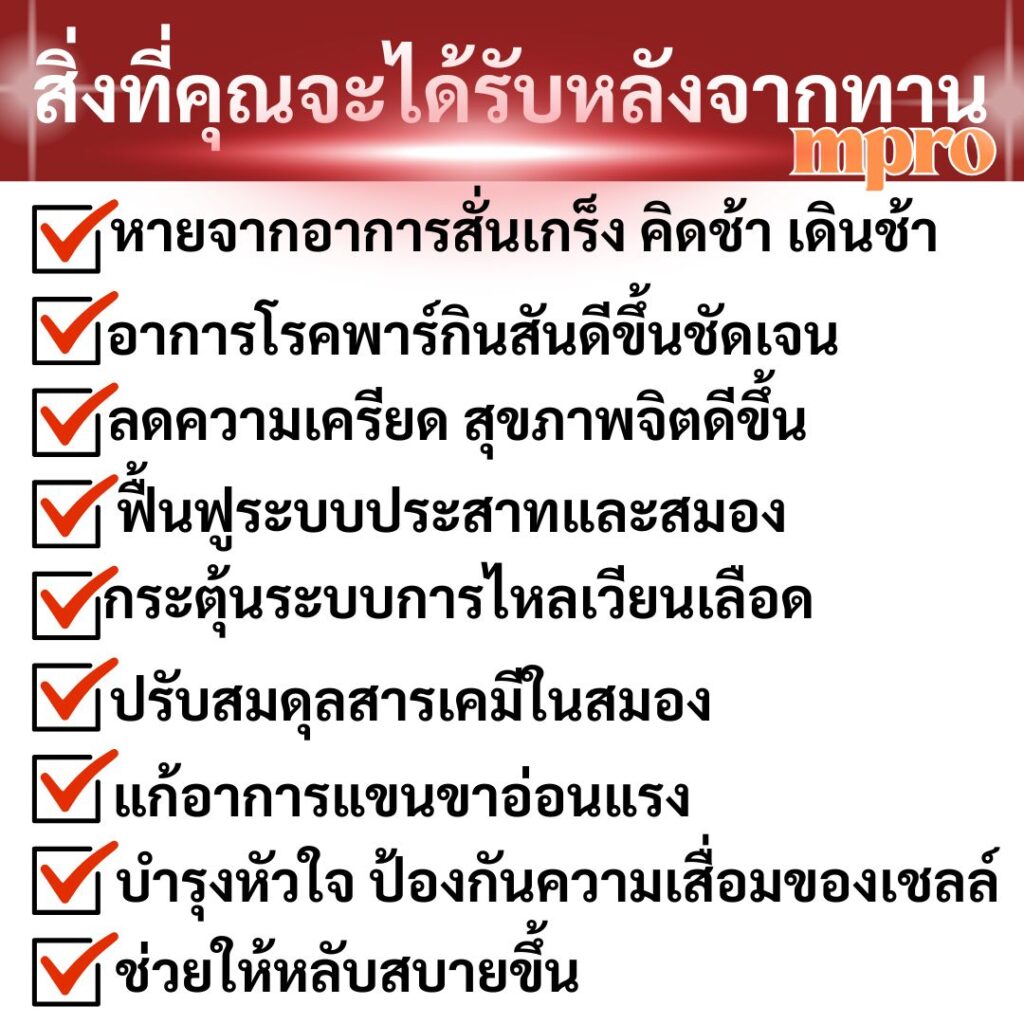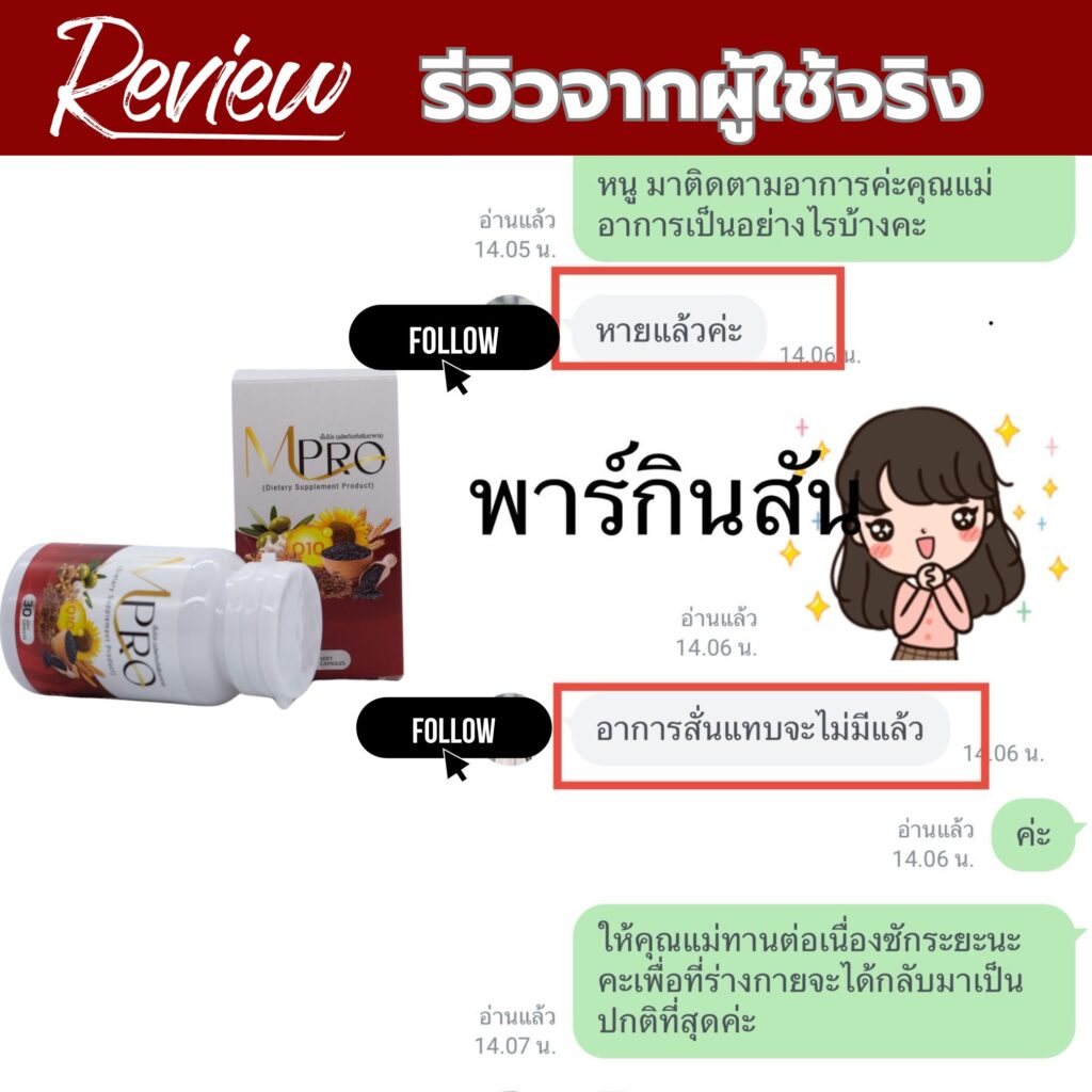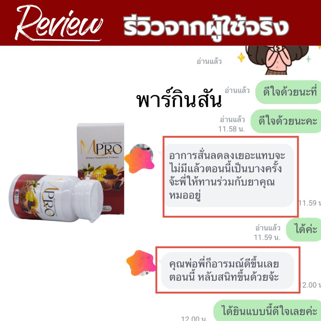 พอช่วงไปหาหมออาการก็เหมือนจะดีขึ้นแต่ก็ไม่หายอาการก็กลับมา เป็น ๆ หาย ๆ แบบนั้นอยู่หลายปี หมดค่ารักษาไปเยอะก็ไม่ดีขึ้นทรมานมากๆ อาการก็มากขึ้นเรื่อย ๆ  ขยับไม่ได้ เดินแทบจะเสียการทรงตัวเลย มีอาการสั่นมากขึ้นคิดว่าไม่ไหวท้อเลยครับเครียดมาก ๆ ช่วงนั้นเพราะผมต้องทำงานเลี้ยงดูครอบครัว ผมเลยตัดสินใจลองเข้าไปหาข้อมูลในเน็ตอีกครั้งเกี่ยวกับอยากหายขาดจากโรคนี้ ก็เลยได้เจอข้อมูลเกี่ยวกับ ผลิตภัณฑ์ตัวหนึ่งเป็นสารสกัดจากสจากธรรมชาติ 100% ชื่อ เอ็มโปร MPRO ช่วยรักษาอาการจาก โรคพาร์กินสัน ที่ต้นตอ ปลอดภัยไร้ผลข้างเคียง มีรีวิวจากผู้ใช้จริง และที่สำคัญมีการรับรองจาก อย